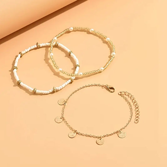 Coastal Charm 3-Piece Layered Anklet Set | Gold 18k